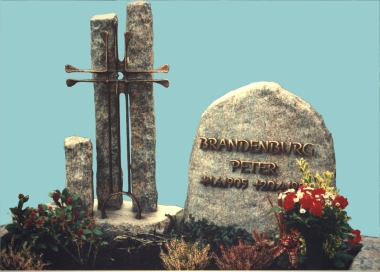 Das Grabmal sowie die Säulen aus beflammten Granit.